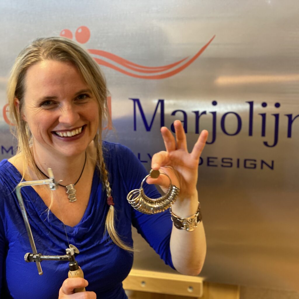 Marjolijn staat er om bekend dat ze vaak kiest voor de ambachtelijke, Delftse gietmethode. Hierdoor ontstaan unieke vormen die terug te vinden zijn in haar sieradencollectie. Kijk op haar webshop www.juwelenlijn.nl voor haar creaties.